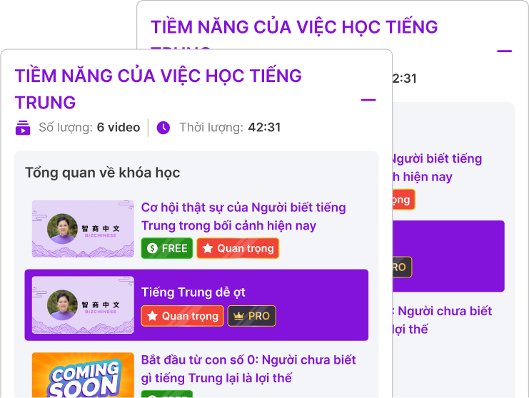 Với hơn 100 video được chia nhỏ theo từng chương và chủ đề, bạn có thể học theo thứ tự các bài học được sắp xếp hoặc học trực tiếp vào các chủ đề mà Bạn quan tâm.